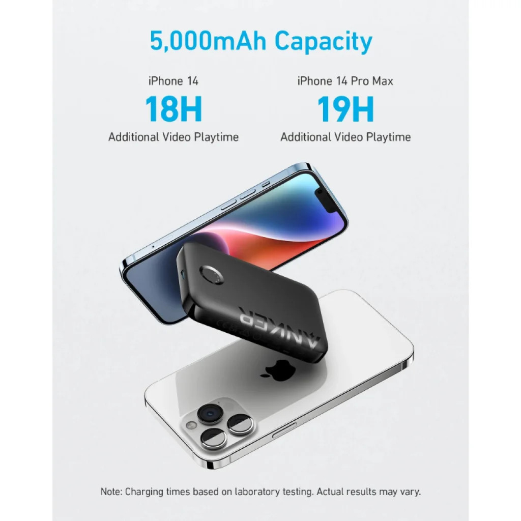Az 5000 mAh kapacitás jelentős plusz energiát biztosít telefonjának a mindennapok során. Például egy iPhone 14 esetében akár további 18 órányi videó lejátszási időt, míg egy iPhone 14 Pro Max esetén további 19 órányi videó lejátszási időt biztosíthat a powerbank. Így gondtalanul élvezheti kedvenc tartalmait, bárhol is legyen, anélkül, hogy aggódnia kellene az akkumulátor lemerülése miatt.