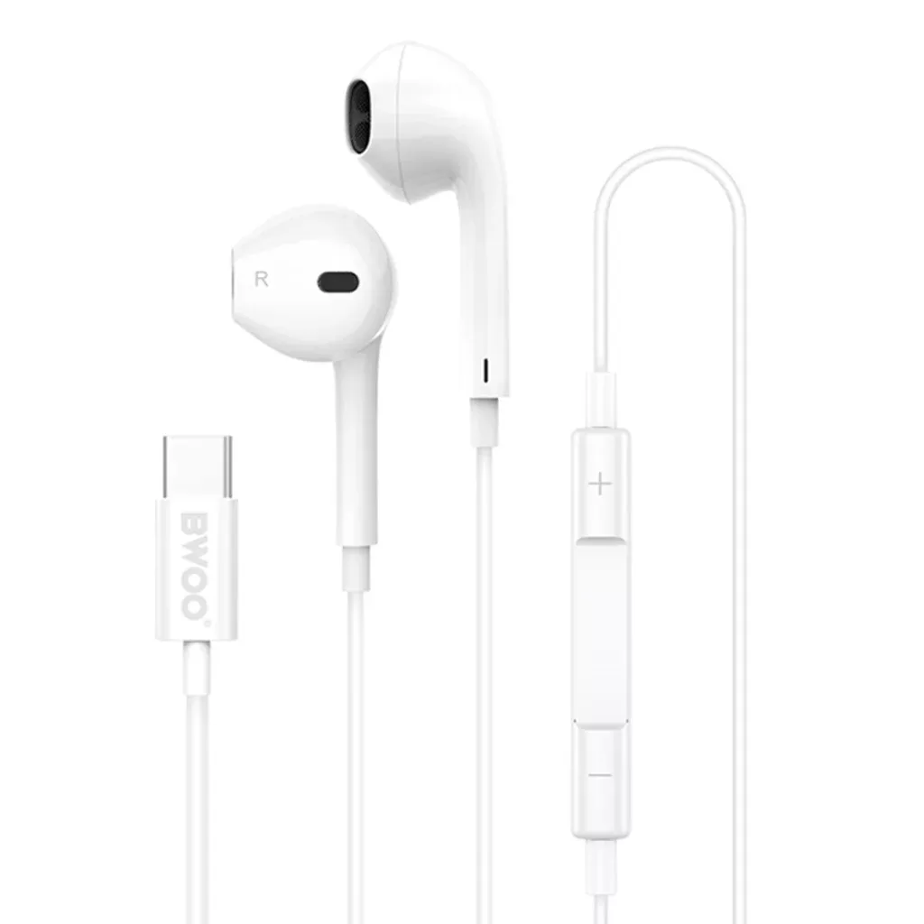 BWOO vezetékes fülhallgatók HF175 Iphone 15-höz USB-C digitális interfésszel fehér