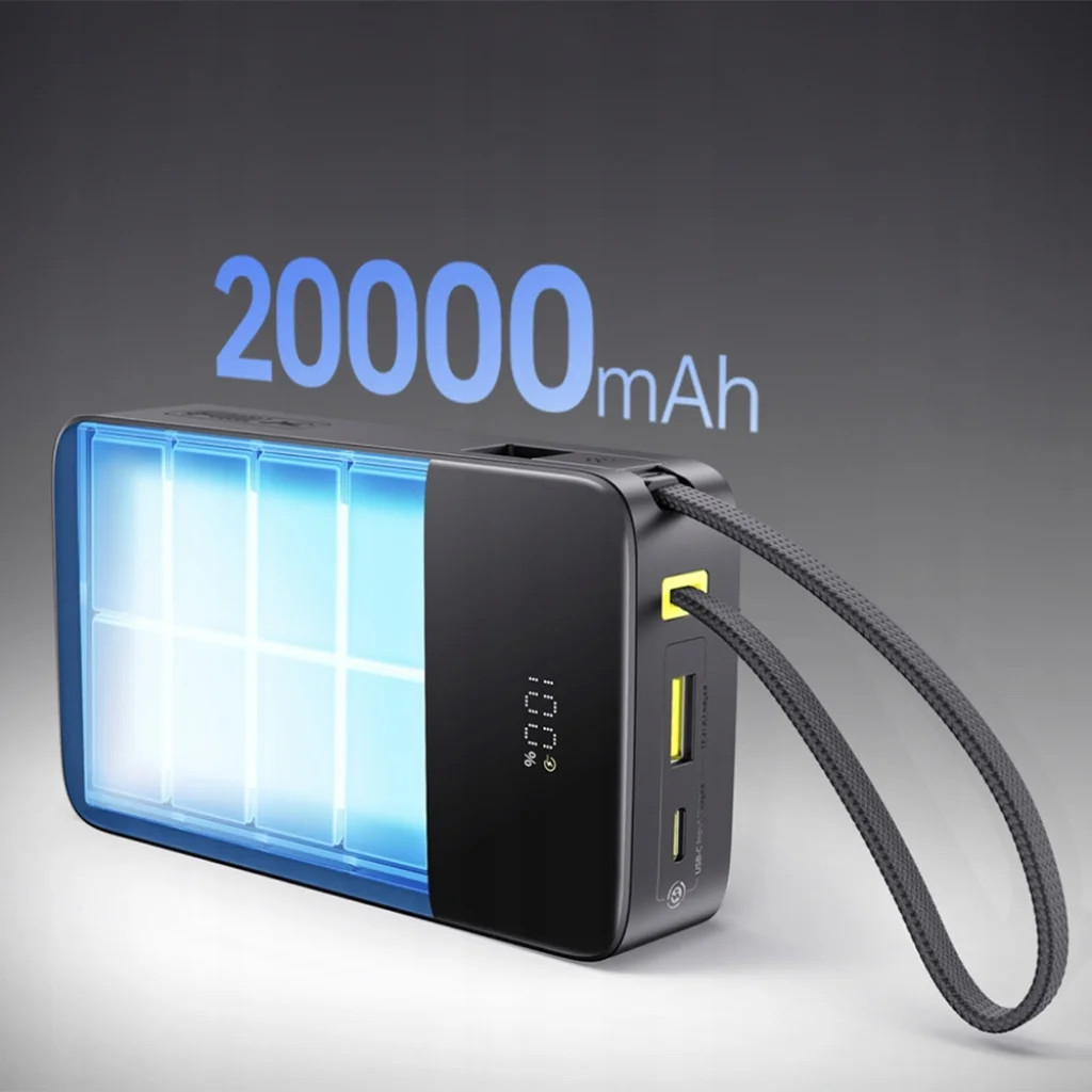 Ez a power bank óriási, 20000mAh-s kapacitásával többször is képes teljesen feltölteni okostelefonodat, táblagépedet vagy akár okosórádat. Ideális választás hosszú utazásokhoz, kempingezéshez vagy mindennapi használatra, amikor több eszközről is gondoskodnod kell.