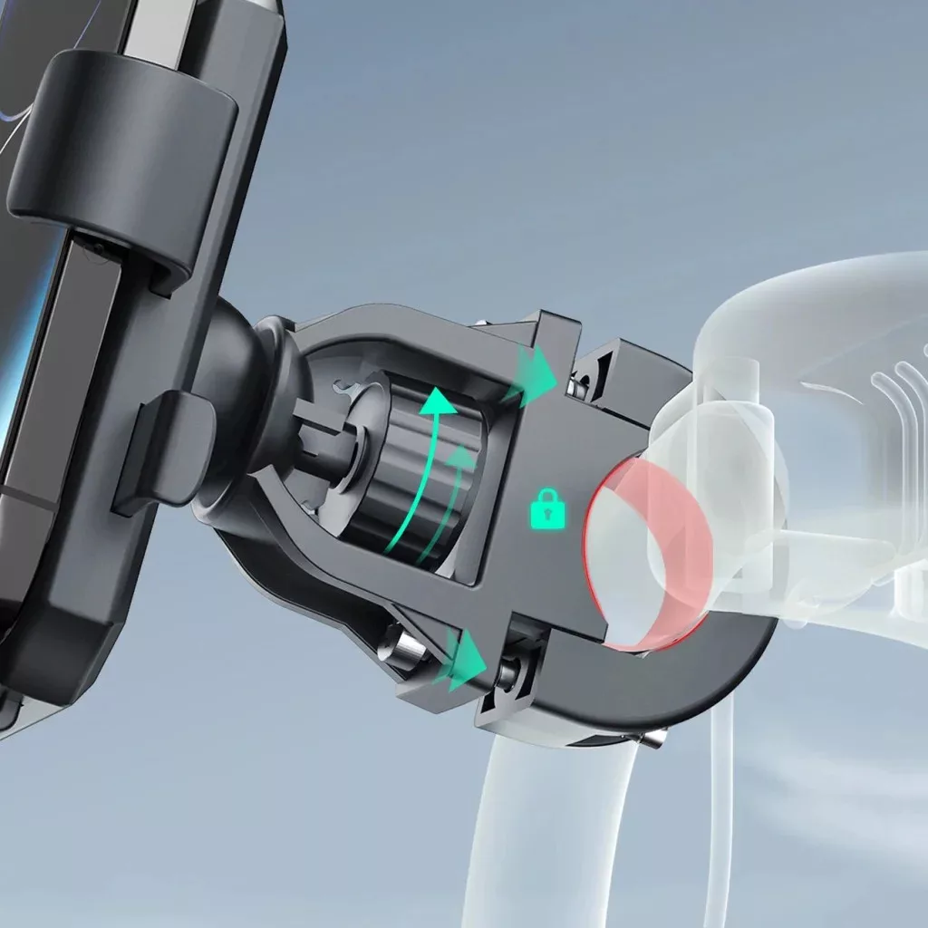 Biciklis/motoros telefontartó Dudao F7C - fekete Egy kompakt tartó, amelyet bicikli vagy motor kormányára rögzíthetsz, maximális láthatóságot biztosítva az útra. A tartó gömbcsuklós - így biztos lehetsz benne, hogy tökéletesen beállíthatod a telefon elrendezését. A tartó elemei szilikonból készülnek, amelyek biztonságosak és kíméletesek a telefon burkolatára. A pofák klasszikus rugós mechanizmussal rendelkeznek. Specifikáció: - Márka: Dudao - Modell: F7C - Szín: fekete - Kompatibilitás: 5,4'' - 7'' készülékek - Anyag: műanyag + szilikon - Felszerelési hely: kormánytükör