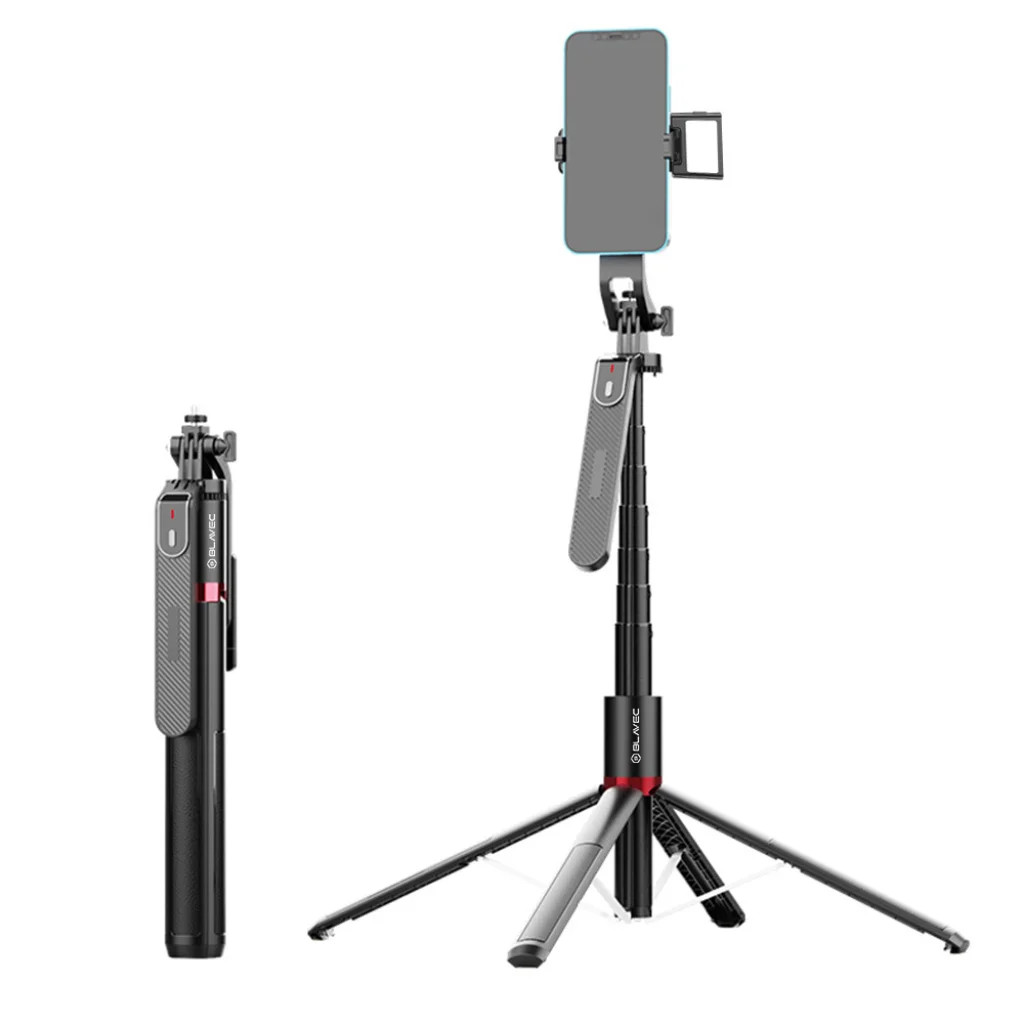 A teleszkóp 33,5 cm-től 220 cm-ig nyúlik ki, lehetővé téve a változatos felvételeket - a szelfiktől a csoportképekig.