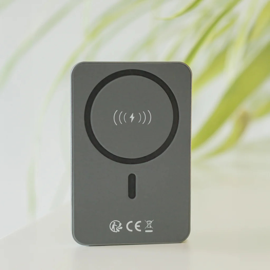 A power bank lehetővé teszi két eszköz egyidejű töltését, és a telefonhoz való mágneses rögzítés biztosítja a stabilitást a vezeték nélküli töltés során.