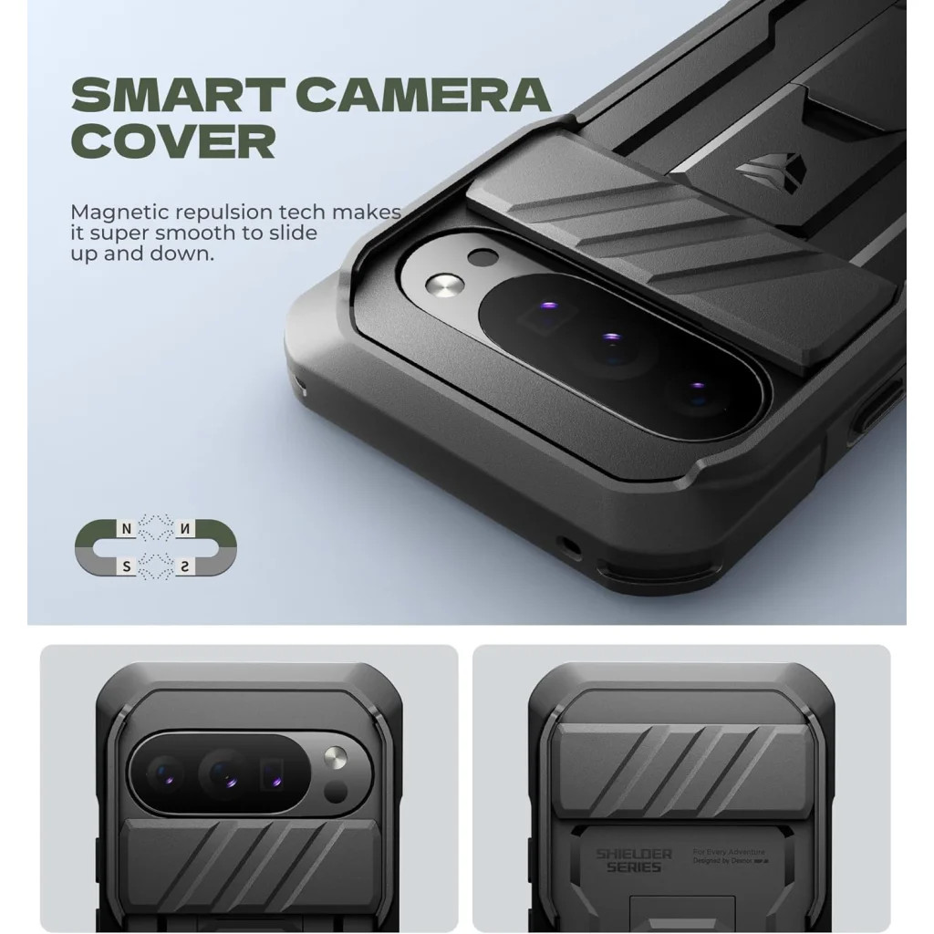 A Smart Camera Cover (intelligens kameravédő) mágneses taszítási technológiája szuper simává és könnyeddé teszi a fedél fel- és lecsúsztatását. Ez a funkció teljes mértékben védi a Pixel 10 Pro XL kameráját a karcolásoktól, portól és egyéb sérülésektől, miközben diszkréten és stílusosan illeszkedik a SHIELDER SERIES dizájnba, amelyet a Dexnor tervezett.