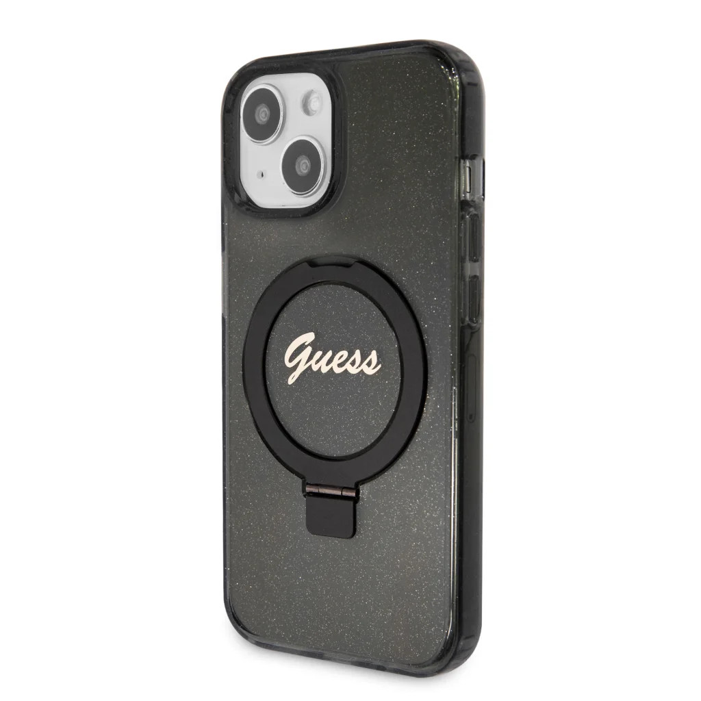 Guess IML Ring Stand Glitter MagSafe tok iPhone 15 Fekete-3666339156329 7 kép