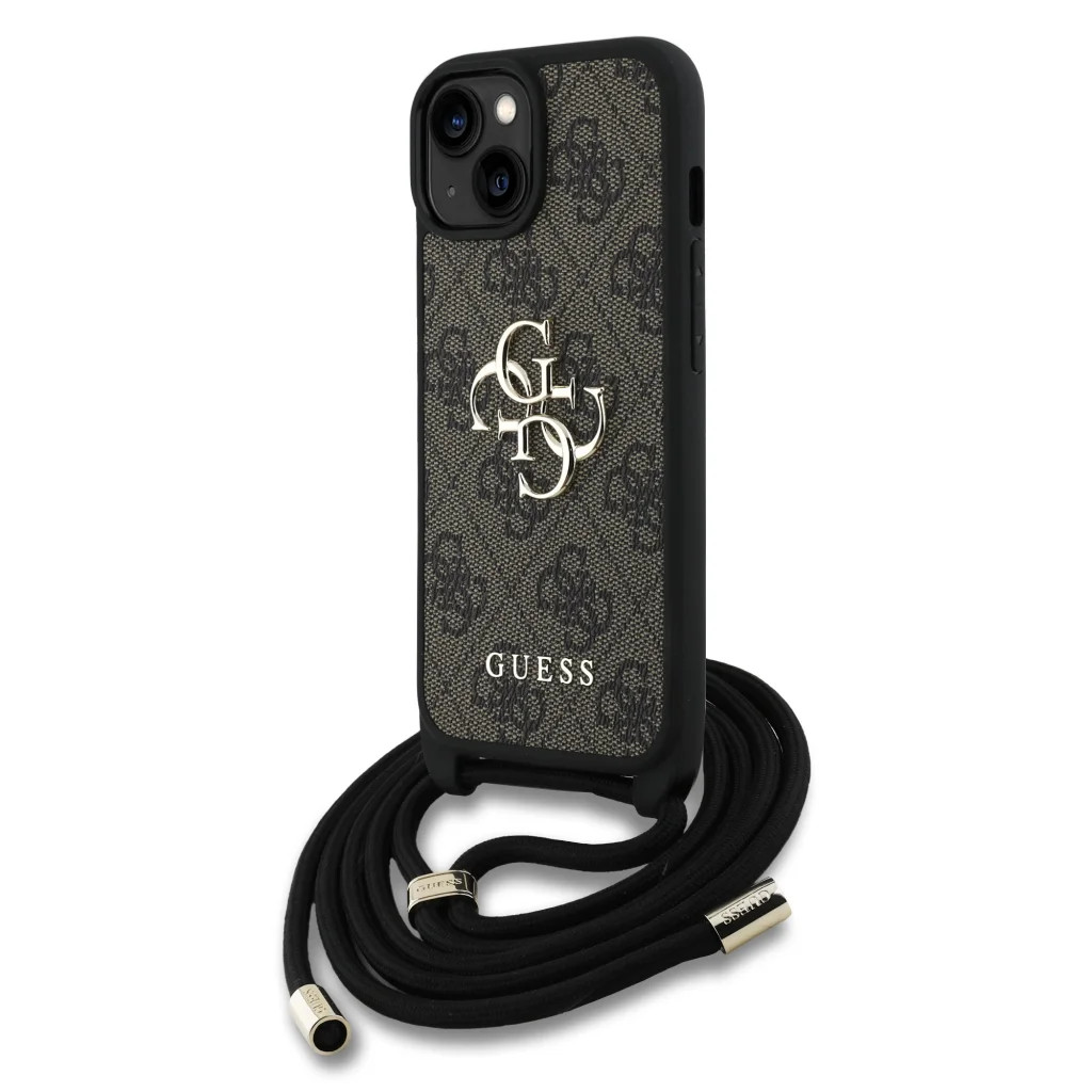 Guess PU 4G Fém Logó Keresztpántos Tok iPhone 15-höz Barna tok-3666339434380 2 kép