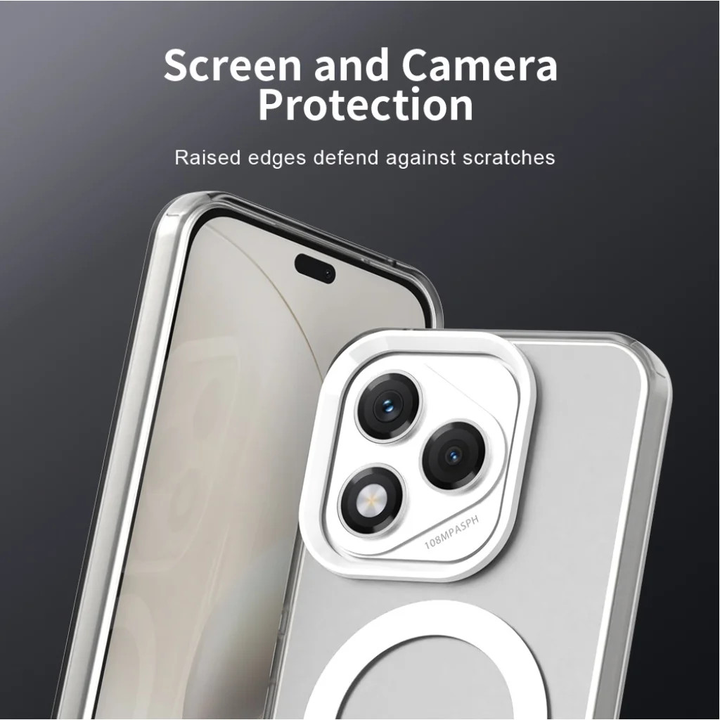 Ez a tok tökéletes egyensúlyt teremt az esztétika és a funkcionalitás között. A minimalista, átlátszó design lehetővé teszi, hogy Honor 400 Lite készüléke eredeti szépsége érvényesüljön, míg a beépített fehér MagSafe gyűrű elegáns és modern kiegészítőként funkcionál. Az "Ultimate Delicate Touch" technológia révén a tok felülete kivételesen selymes és kellemes tapintású, a precízen megmunkált, független gombok pedig tökéletes visszajelzést adnak. A tökéletes illeszkedés és a kényelmes fogás garantálja, hogy a telefon használata hosszú távon is élvezetes és fáradtságmentes marad.