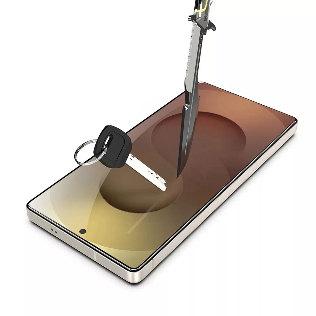 • 9H keménységű TitanGlass: A legkeményebb üvegfólia kategóriájába tartozik, ellenáll a karcolásoknak, ütődéseknek és kopásnak, még a mindennapi használat során is, ahogy azt a kulccsal és késsel végzett tesztek is szemléltetik. Telefonja biztonságban lesz a zsebben vagy táskában lévő tárgyakkal szemben.
