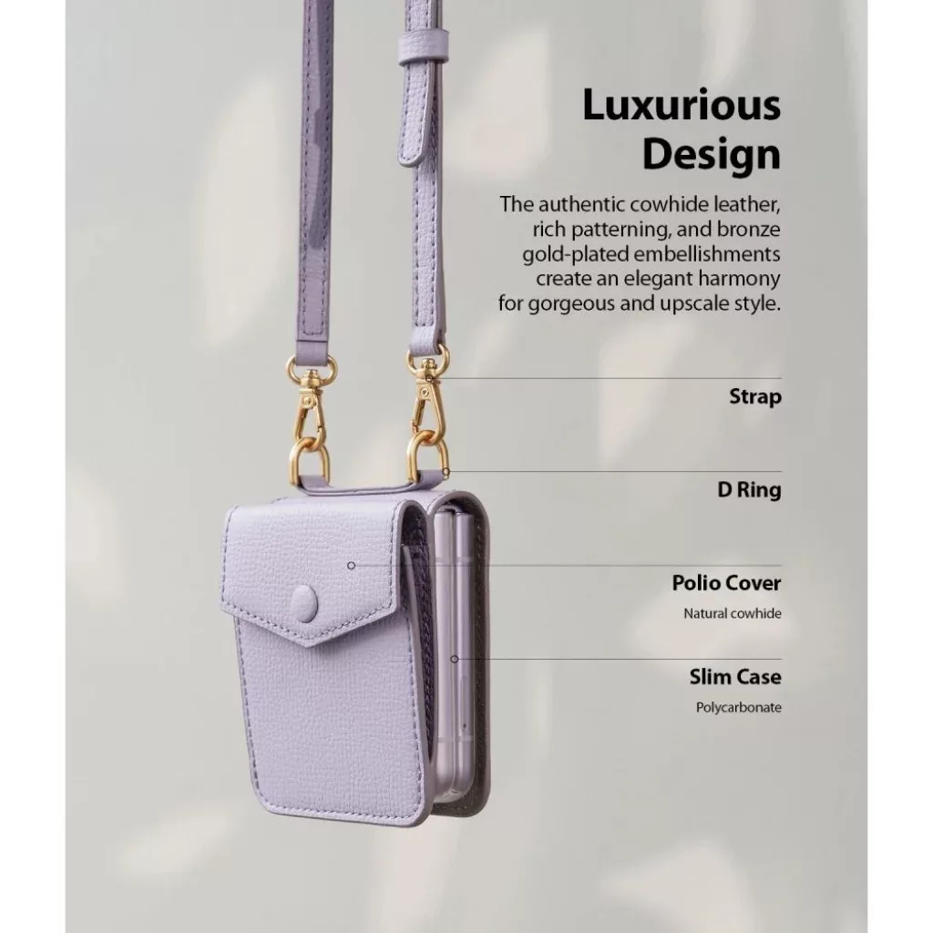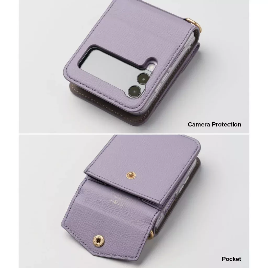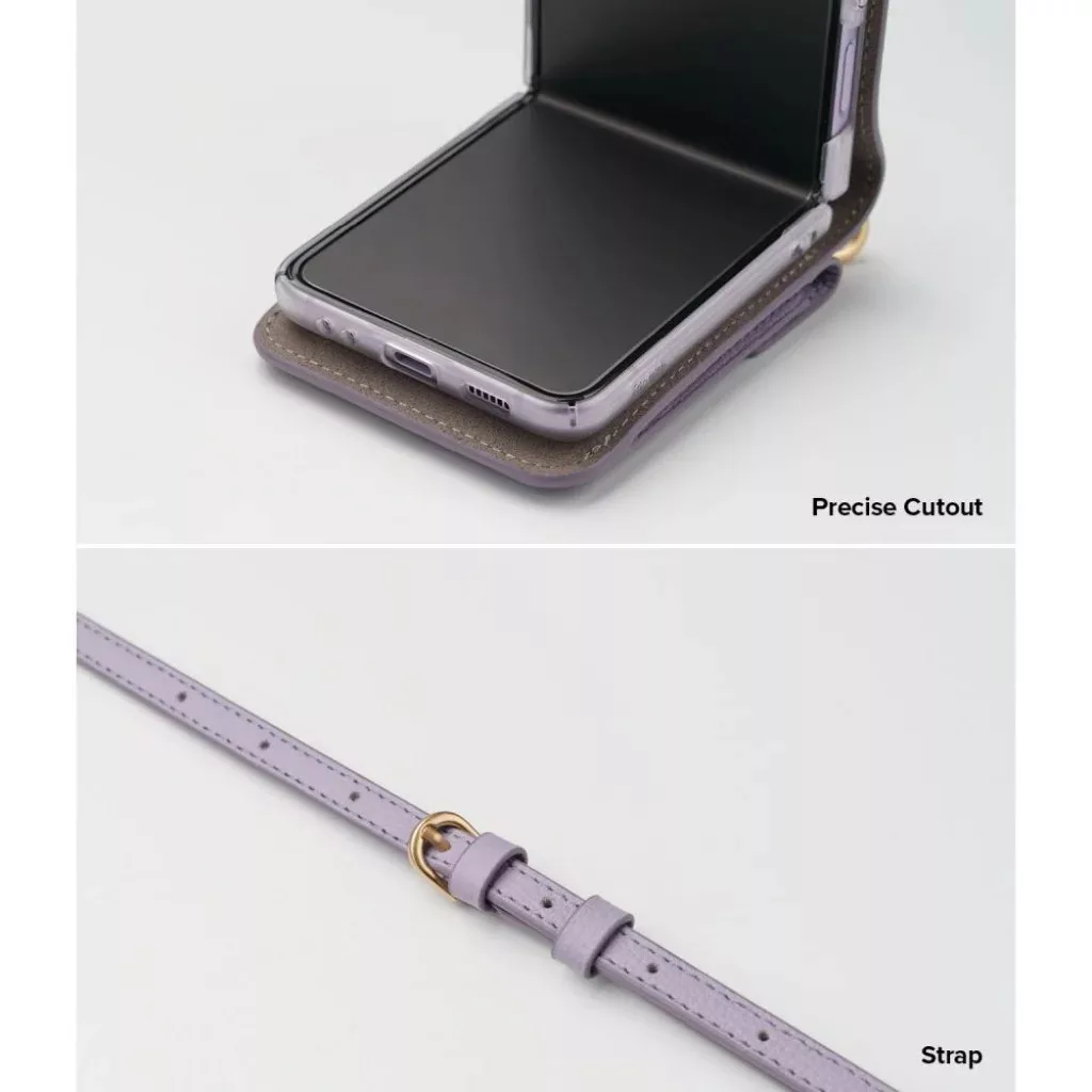 Samsung Galaxy Z Flip 3 Ringke Signature valódi bőr tok vállpánttal világos lila