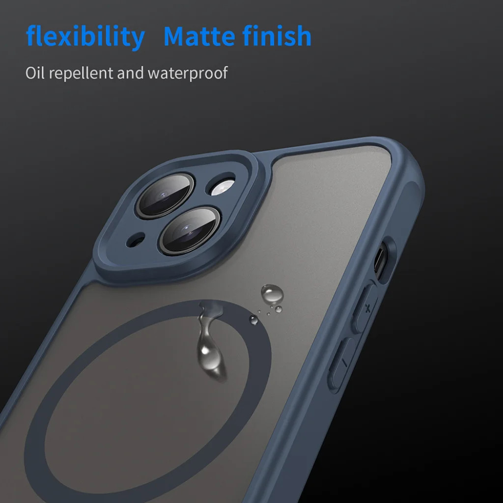 • Tengerészkék keret és MagSafe kompatibilitás: Az elegáns tengerészkék színű keret tökéletesen illeszkedik a MagSafe kompatibilis gyűrűhöz, biztosítva a gyors és biztonságos vezeték nélküli töltést és a MagSafe kiegészítők erős rögzítését.