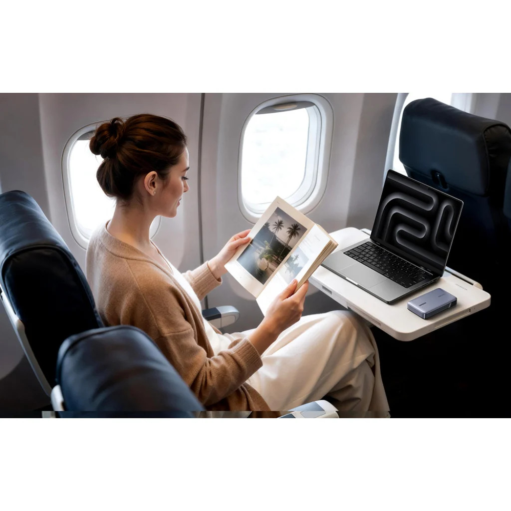 A kompakt kialakítás (139 × 80 × 26,7 mm), a könnyű súly (450 g) és a powerbank töltés közbeni használatának lehetősége teszi az UGREEN PB551-et tökéletessé a vonaton vagy a szállodában való utazáshoz. A 72 Wh energiakapacitással megfelel a kézipoggyászra vonatkozó légitársasági előírásoknak (kevesebb mint 100 Wh), így könnyedén felviheti a fedélzetre, és még a repülőút alatt is hozzáférhet az energiához.