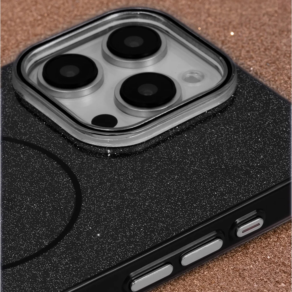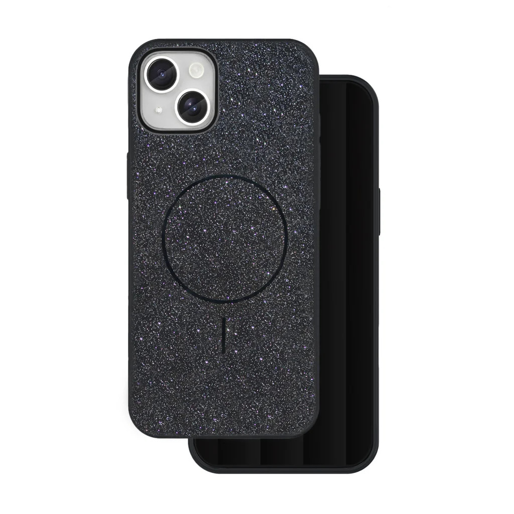 iPhone 13 6,1"-hoz fekete vékony csillámos mágneses tok