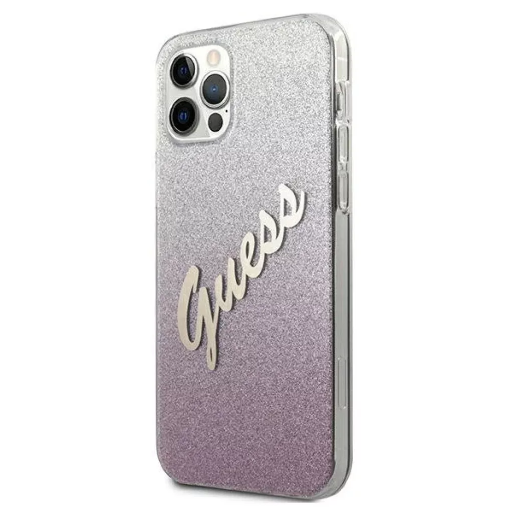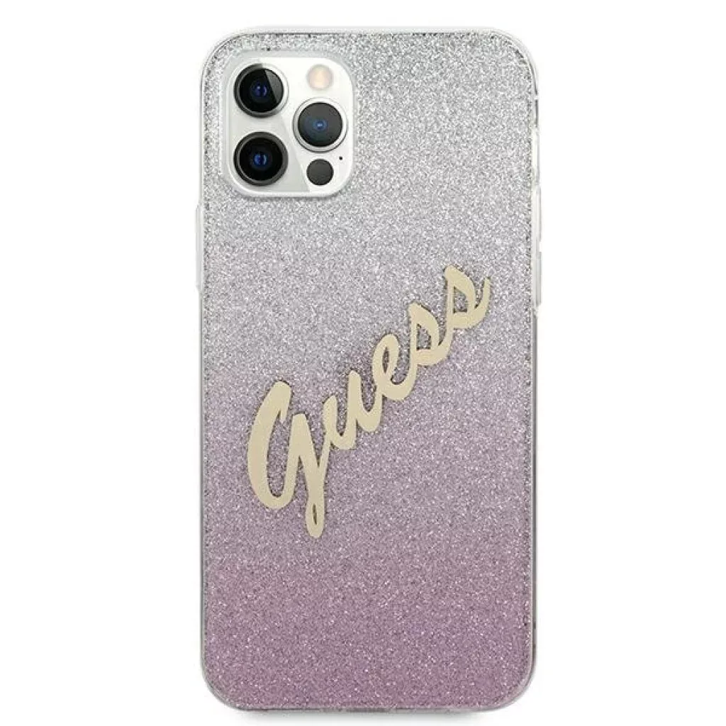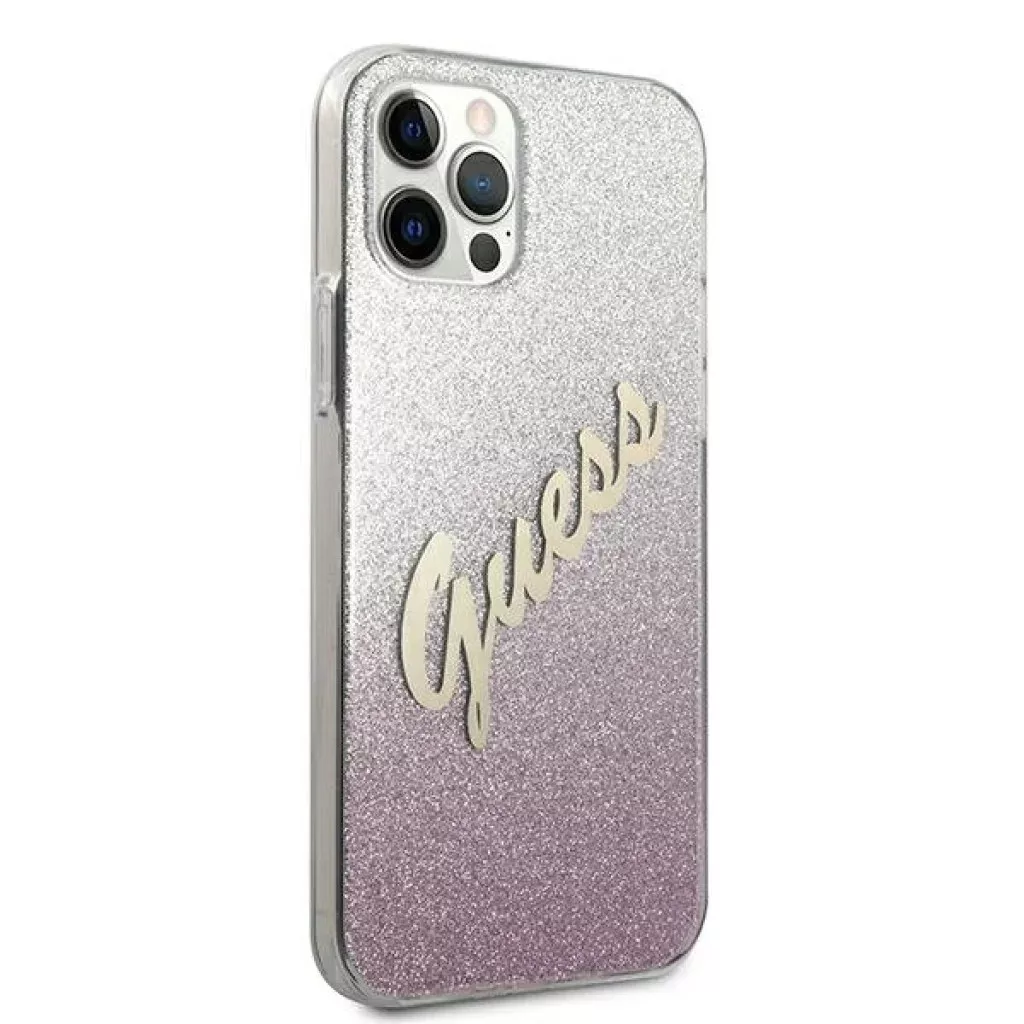 iPhone 12 Pro Max Guess GUHCP12LPCUGLSPI Glitter Gradient Script tok flitteres pink