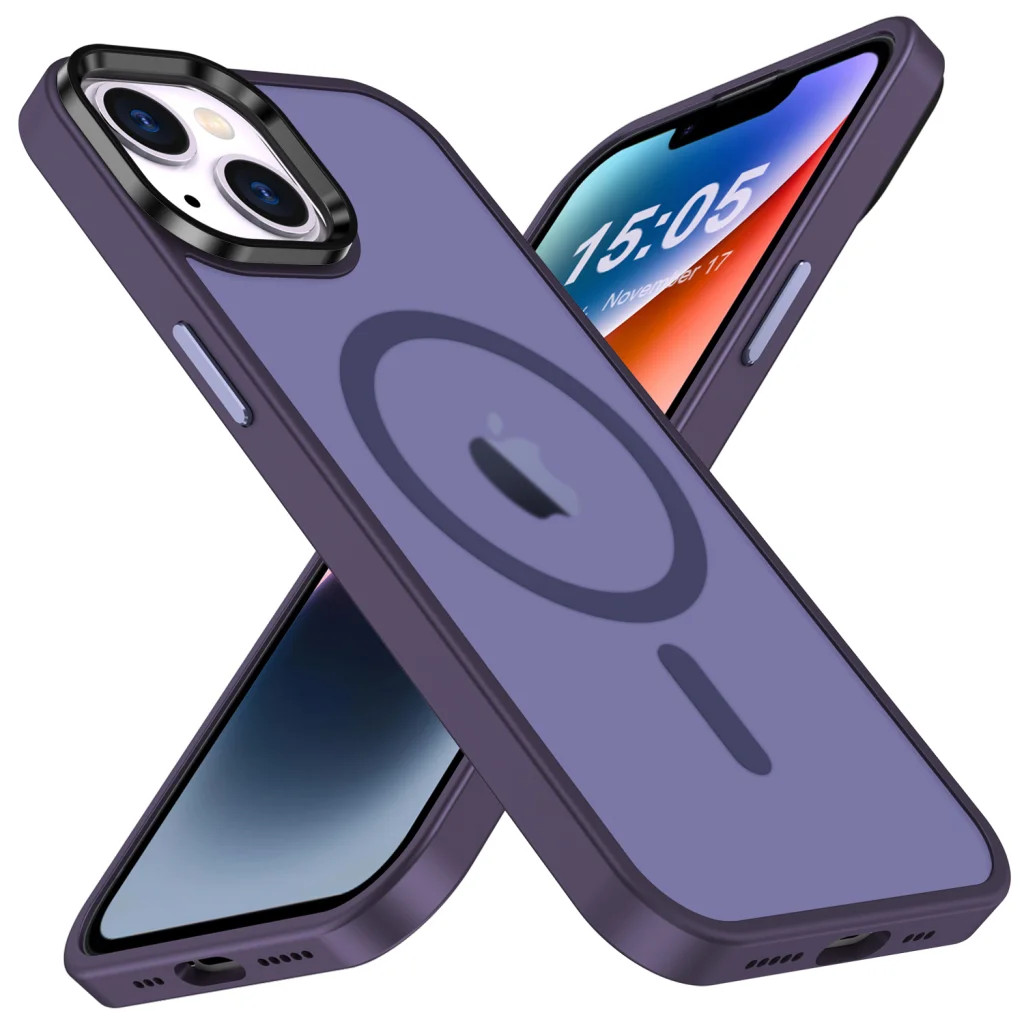 iPhone 15 MagSafe-kompatibilis áttetsző matt tok sötétlila Alphajack