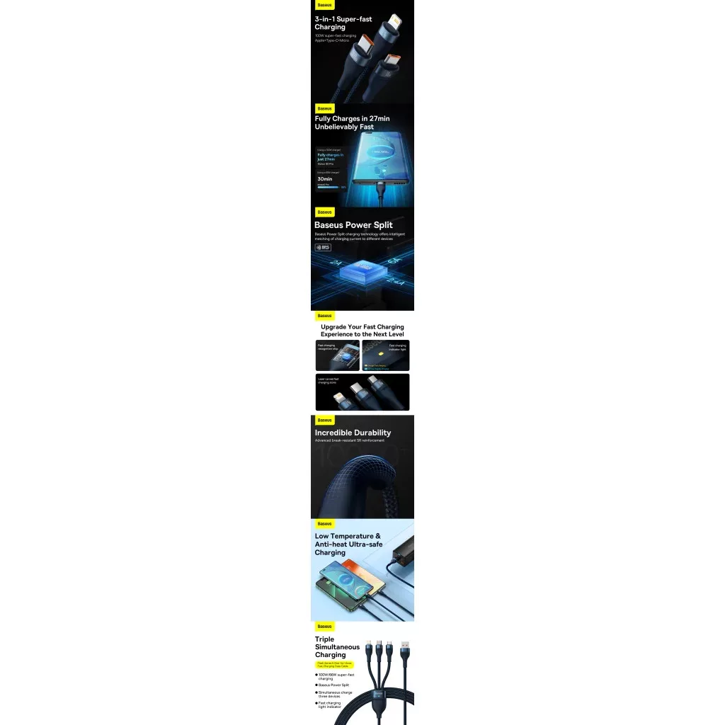 Baseus 3 az 1-ben USB - USB Type C, Lightning, Micro USB kábel 100W 6-6932172608729 3 kép