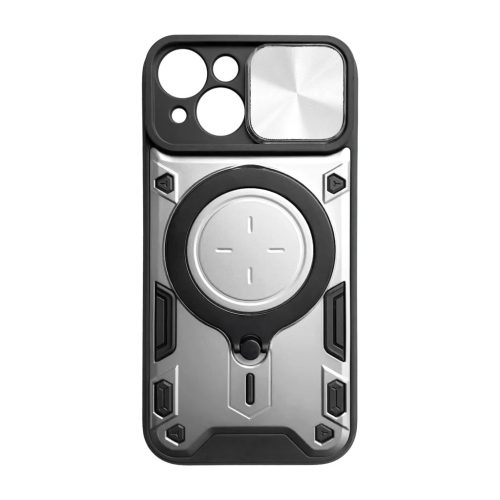 iPhone 15 Ring Armor tok kameralencse védővel, kihajtható támasszal, ezüst Alphajack